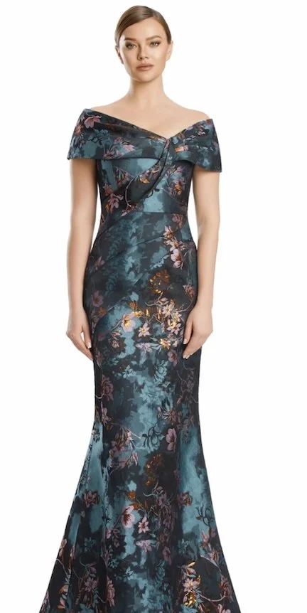 Off the shoulder brocade available in Teal, Champagne, Navy and Mint.